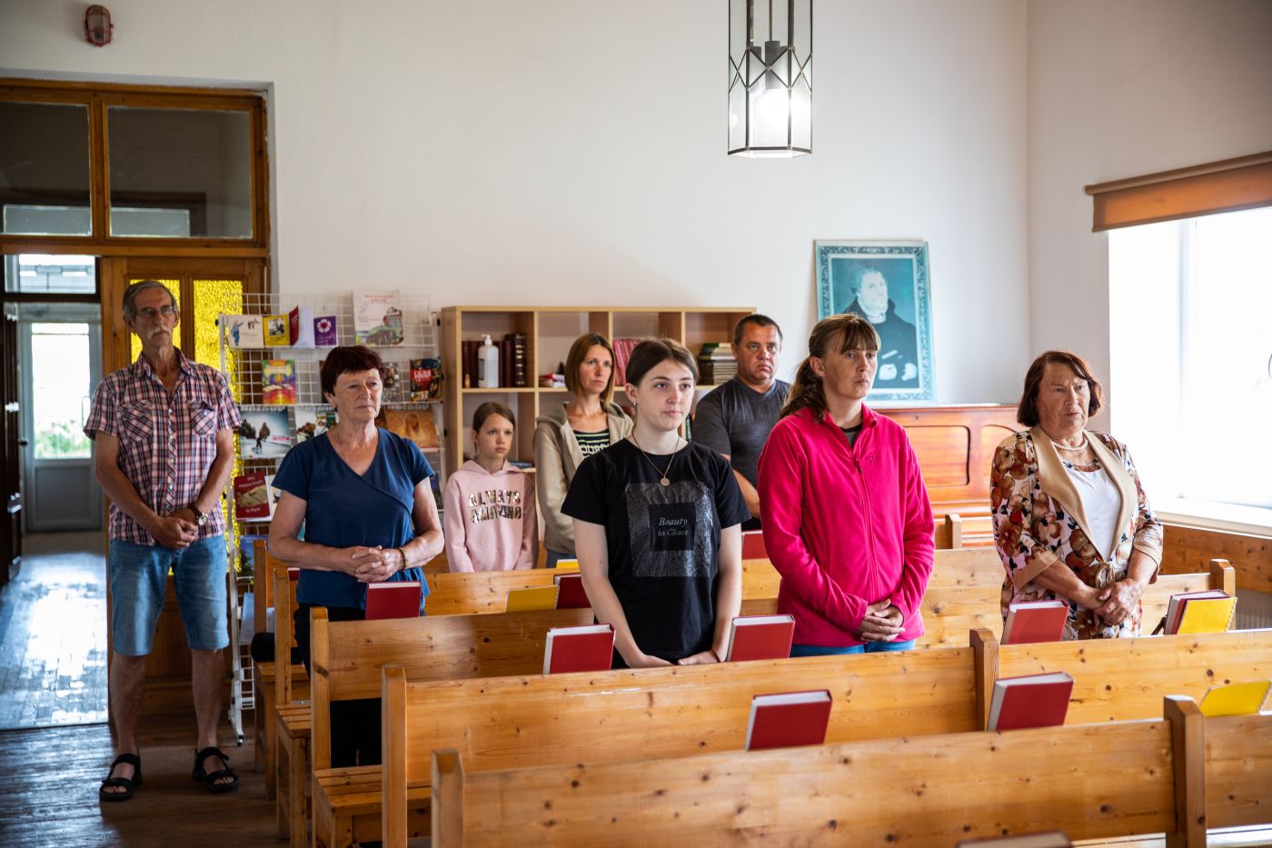 Szvetlana elmondja: „Amint csak lehet, hazamegyünk.” Lányai online oktatásban részesülnek. Viktória, a nagyobbik most érettségizik, Valeria, a kisebb pedig más menekültekkel együtt most konfirmált. A végén együtt imádkozunk, majd a lányoknak egy-egy Luther-rózsás kitűzőt adok. Elmondom nekik, hogy mi, magyar evangélikusok így köszöntjük egymást: „Erős vár a mi Istenünk!” Utána jövök rá: éppen a menekültek világnapja van.
