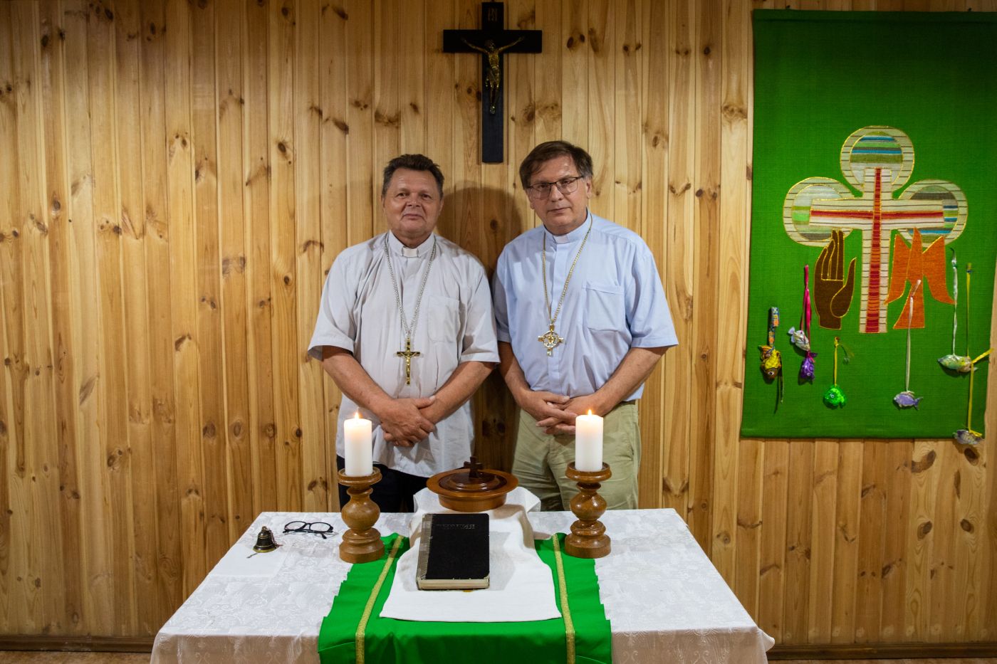 Nem sokkal később a harangok sokkal kedvesebb hangja szól. Örömmel készülök a vasárnapi szolgálatomra, hiszen elsősorban azért jöttem, hogy Isten vigasztaló és bátorító igéjét hirdessem itteni testvéreimnek. Vendéglátónk Alexander Gross, a gyülekezet lelkésze, aki egyúttal az Ukrajnai Evangélikus Egyház zsinati elnöke is. Ennek a közösségnek a püspökét, Pavlo Shvartsot láthattuk tavaly vendégül az Északi Egyházkerület missziói napján.