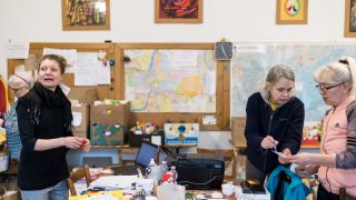 Szvetlana és két lánya ül szemben velem. A nagymama otthon a gyülekezet felügyelője. Könnyeiket törölgetve mesélnek arról, hogyan élték át az orosz megszállást. A kórház és a középületek megsérültek, a templom ablakai is betörtek. De telefonjukon képet mutatnak arról, hogy ősszel, az aratási hálaadó ünnepen ilyen körülmények között is feldíszítették a templomukat, és együtt imádkoztak. „Jobban féltettem a templomot, mint a saját házamat” – mondja Szvetlana. Amikor az ukrán felszabadítók megérkeztek, a civilek és a katonák együtt sírtak az örömtől. A megszállás idején a helyükön maradtak, de a gátszakadás után el kellett hagyniuk az otthonukat.